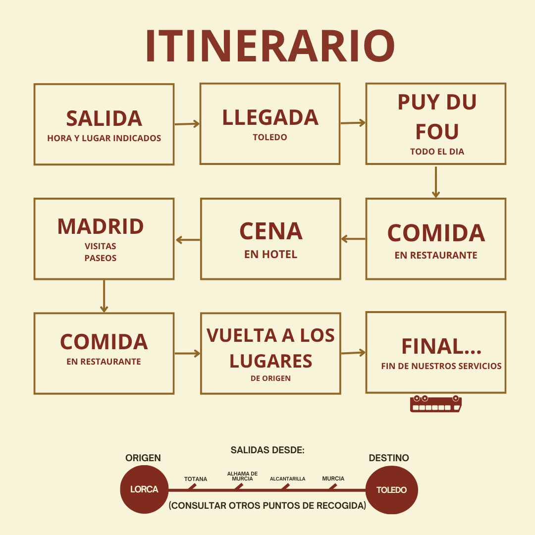 NOTAS: EL PRECIO NO INCLUYE ENTRADAS NI SERVICIOS QUE NO ESTÉN ESPECIFICADOS EN EL APARTADO “EL PRECIO INCLUYE”. // PARA REALIZAR LA RESERVA ES NECESARIO ABONAR 50 € // SALIDA GARANTIZA CON 40 PASAJEROS. EN CASO DE NO LLEGAR AL CUPO, SI SE DECIDE REALIZAR EL VIAJE CON MENOS VIAJEROS, SE INFORMARÁ AL CLIENTE DEL POSIBLE INCREMENTO DEL PRECIO DEL VIAJE // EL ORDEN DE LAS VISITAS PUEDE VERSE MODIFICADO POR DIVERSAS CAUSAS AJENAS A LA AGENCIA, EN CUYO CASO SE INTENTARÁN APLAZAR O SUSTITUIR POR OTRAS. // LOS HORARIOS PUEDEN VERSE MODIFICADOS POR DIFERENTES CAUSAS AJENAS A LA AGENCIA Y SIN PREVIO AVISO.