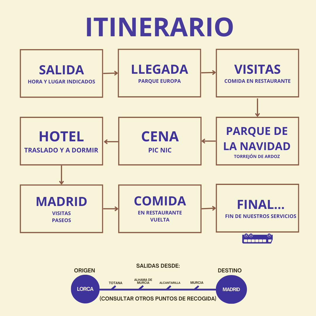 Comenzamos nuestro viaje rumbo al Parque Europa realizando breves paradas en ruta. Llegada y visita a uno de los espacios más sorprendentes de la Comunidad de Madrid, con réplicas de los monumentos más emblemáticos del continente: la Torre Eiffel, el Puente de Londres, la Fontana di Trevi y muchos más. Comida en restaurante y por la tarde, nos sumergiremos en el Parque de la Navidad, hogar de las Mágicas Navidades, el mayor parque temático navideño de España. Luces, espectáculos, atracciones y el auténtico espíritu de la Navidad nos acompañarán durante la visita. Cena picnic. A la finalización, traslado al hotel para el alojamiento. Régimen: Pensión completa.