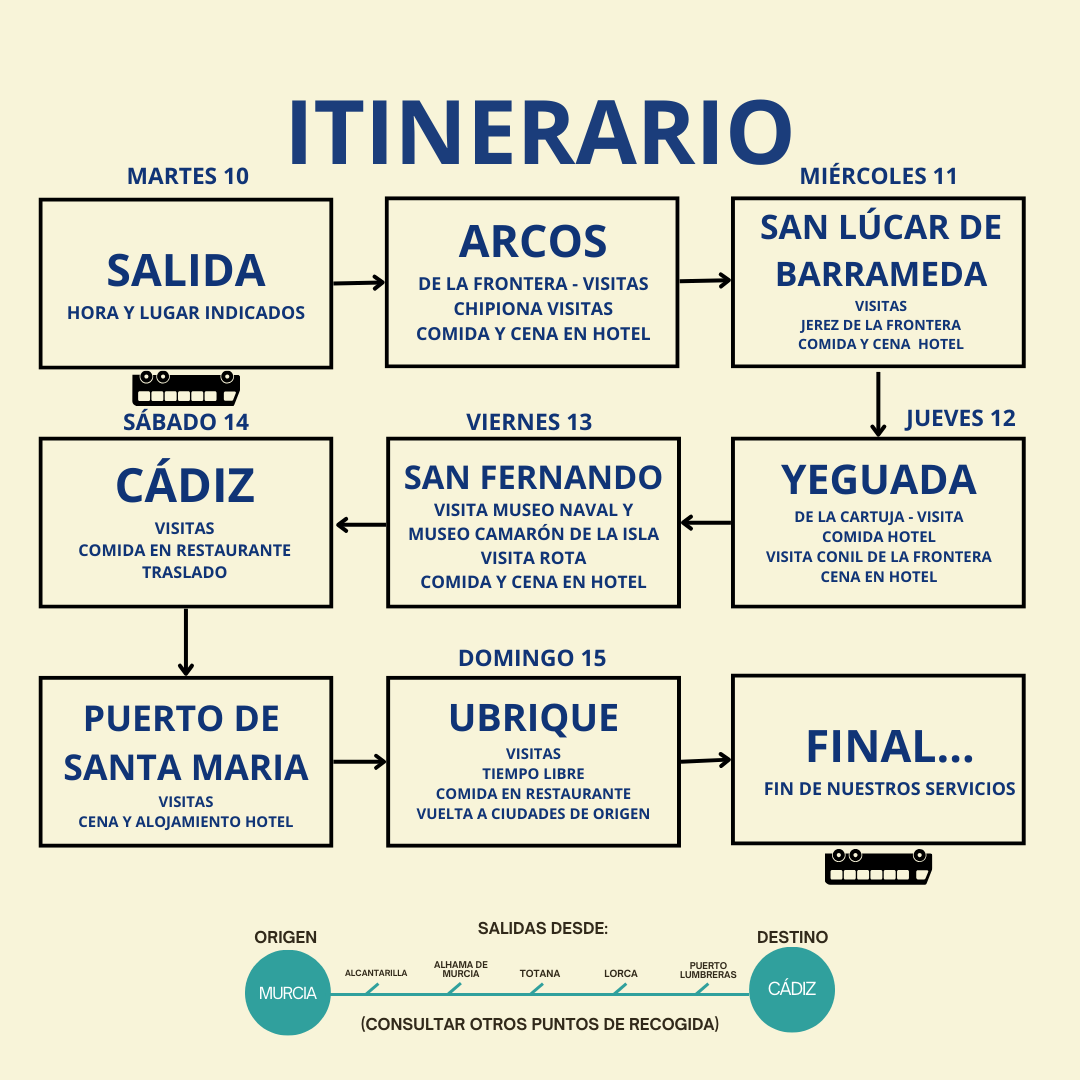 MARTES 10 DE MARZO.- LUGARES DE ORIGEN // ARCOS DE LA FRONTERA // CHIPIONA.