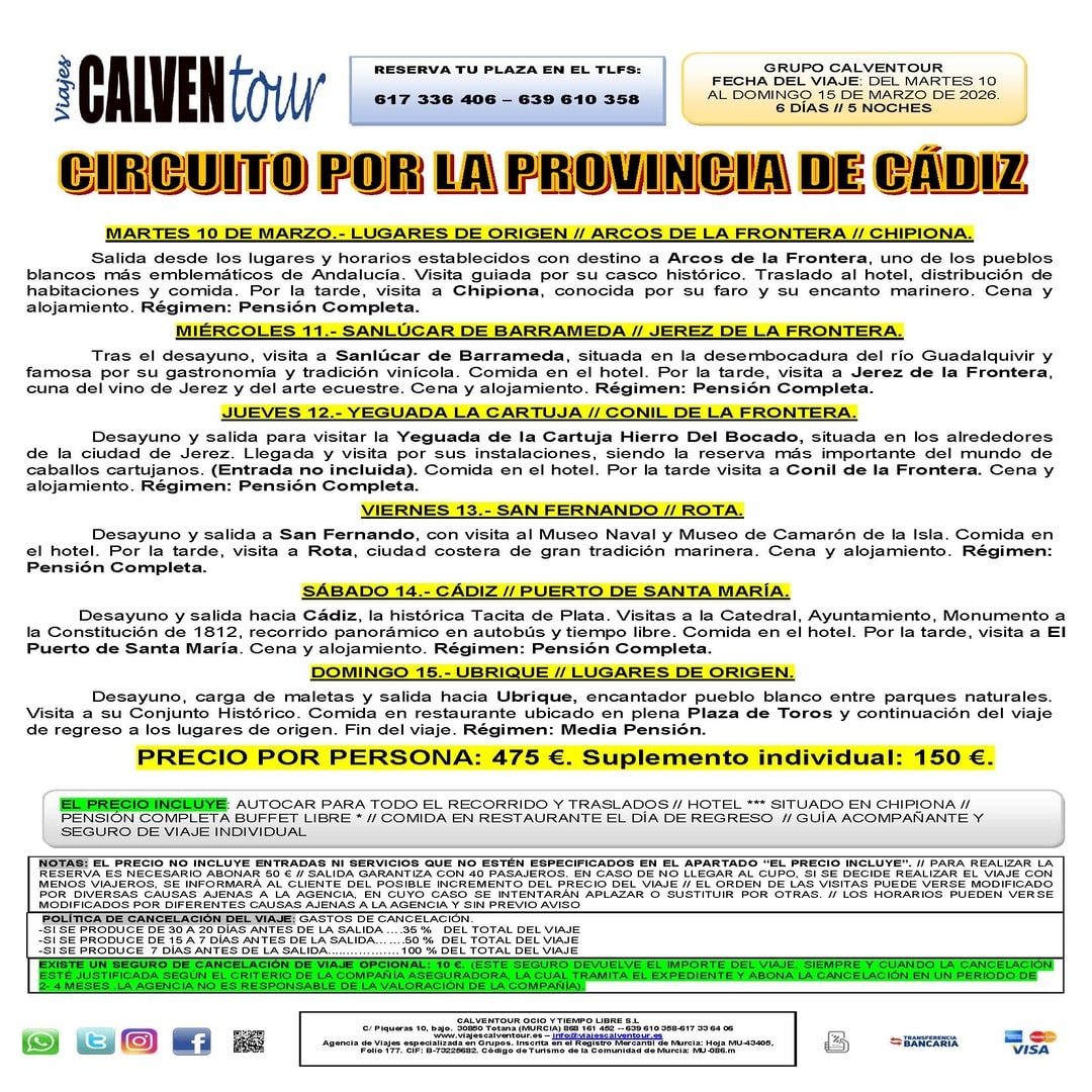 PRECIO POR PERSONA: 475 €. Suplemento individual: 150 €.
