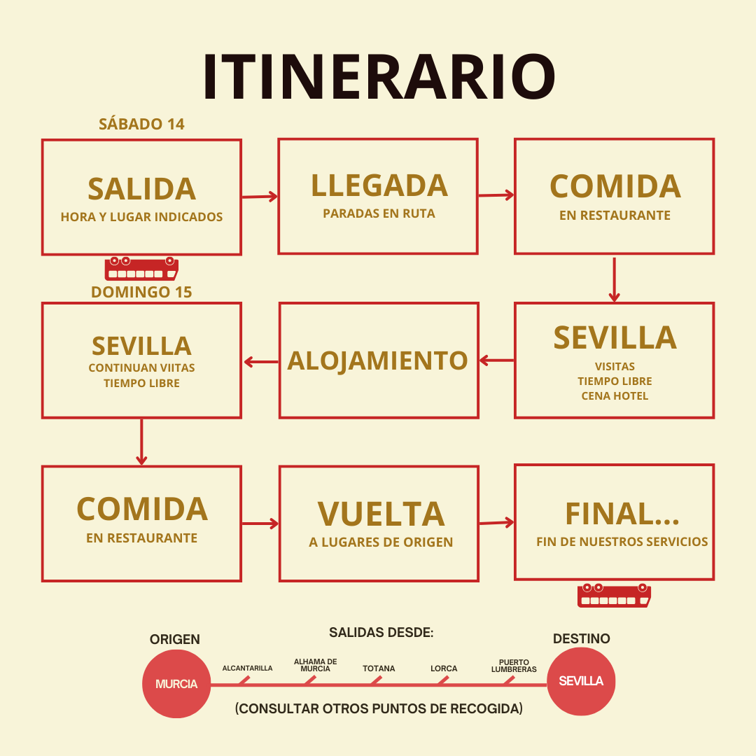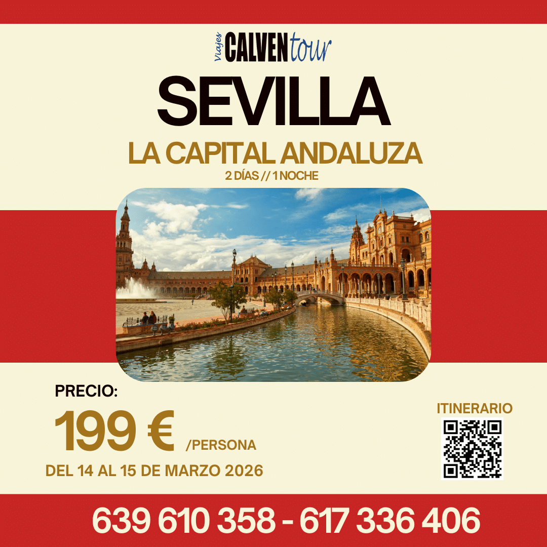 ESCAPADA DE FIN DE SEMANA A SEVILLA. DEL 14 AL 15 DE MARZO DE 2026.