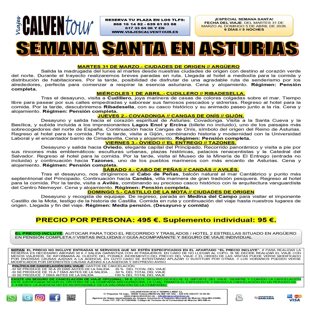 PRECIO POR PERSONA: 495 €. Suplemento individual: 95 €.
