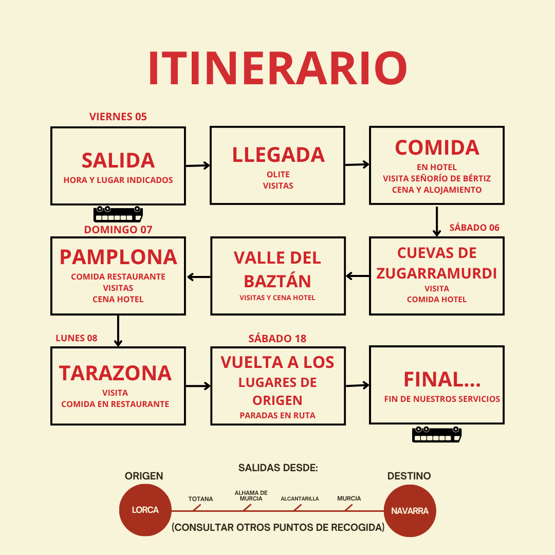 NOTAS: EL PRECIO NO INCLUYE ENTRADAS NI SERVICIOS QUE NO ESTÉN ESPECIFICADOS EN EL APARTADO “EL PRECIO INCLUYE”. // PARA REALIZAR LA RESERVA ES NECESARIO ABONAR 50 € // SALIDA GARANTIZA CON 40 PASAJEROS. EN CASO DE NO LLEGAR AL CUPO, SI SE DECIDE REALIZAR EL VIAJE CON MENOS VIAJEROS, SE INFORMARÁ AL CLIENTE DEL POSIBLE INCREMENTO DEL PRECIO DEL VIAJE // EL ORDEN DE LAS VISITAS PUEDE VERSE MODIFICADO POR DIVERSAS CAUSAS AJENAS A LA AGENCIA, EN CUYO CASO SE INTENTARÁN APLAZAR O SUSTITUIR POR OTRAS. // LOS HORARIOS PUEDEN VERSE MODIFICADOS POR DIFERENTES CAUSAS AJENAS A LA AGENCIA Y SIN PREVIO AVISO
