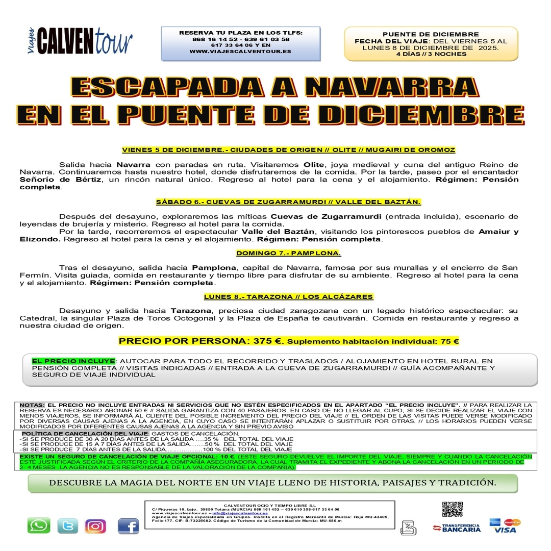 VIAJE A NAVARRA EN EL PUENTE DE DICIEMBRE. DEL 05 AL 08 DE DICIEMBRE DE 2025.