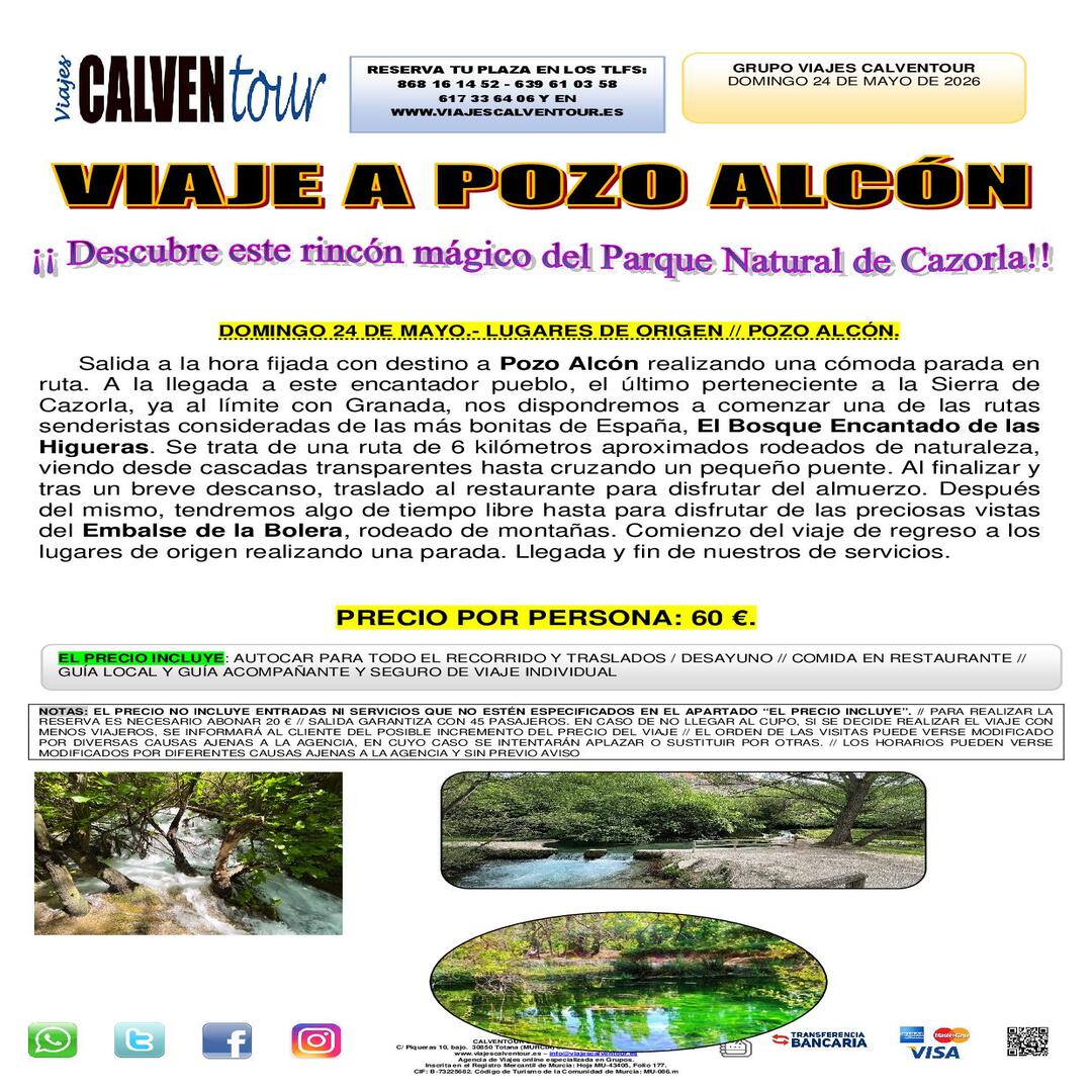 VIAJE A POZO ALCÓN. DOMINGO 24 DE MAYO DE 2026.