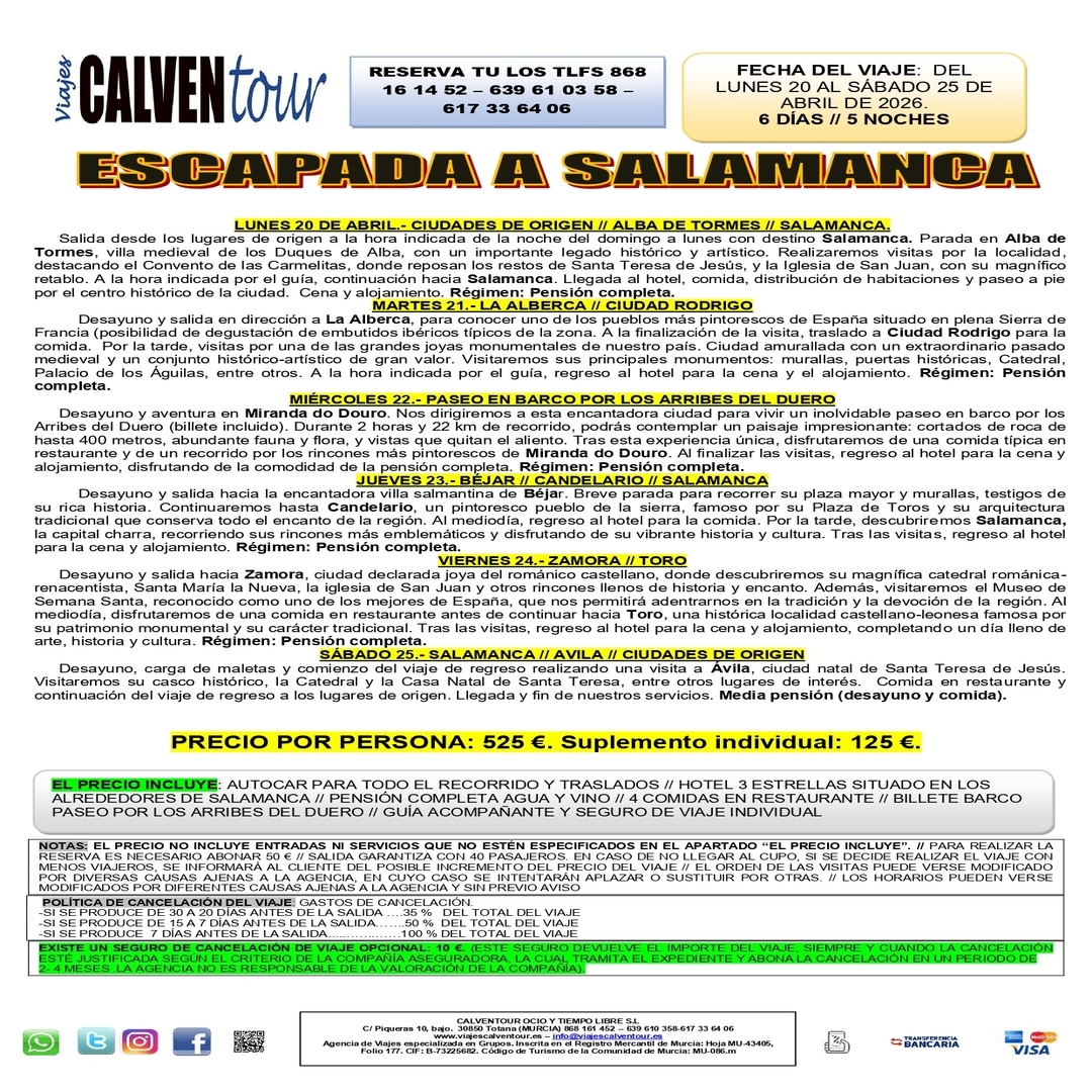 SÁBADO 25.- SALAMANCA // AVILA // CIUDADES DE ORIGEN