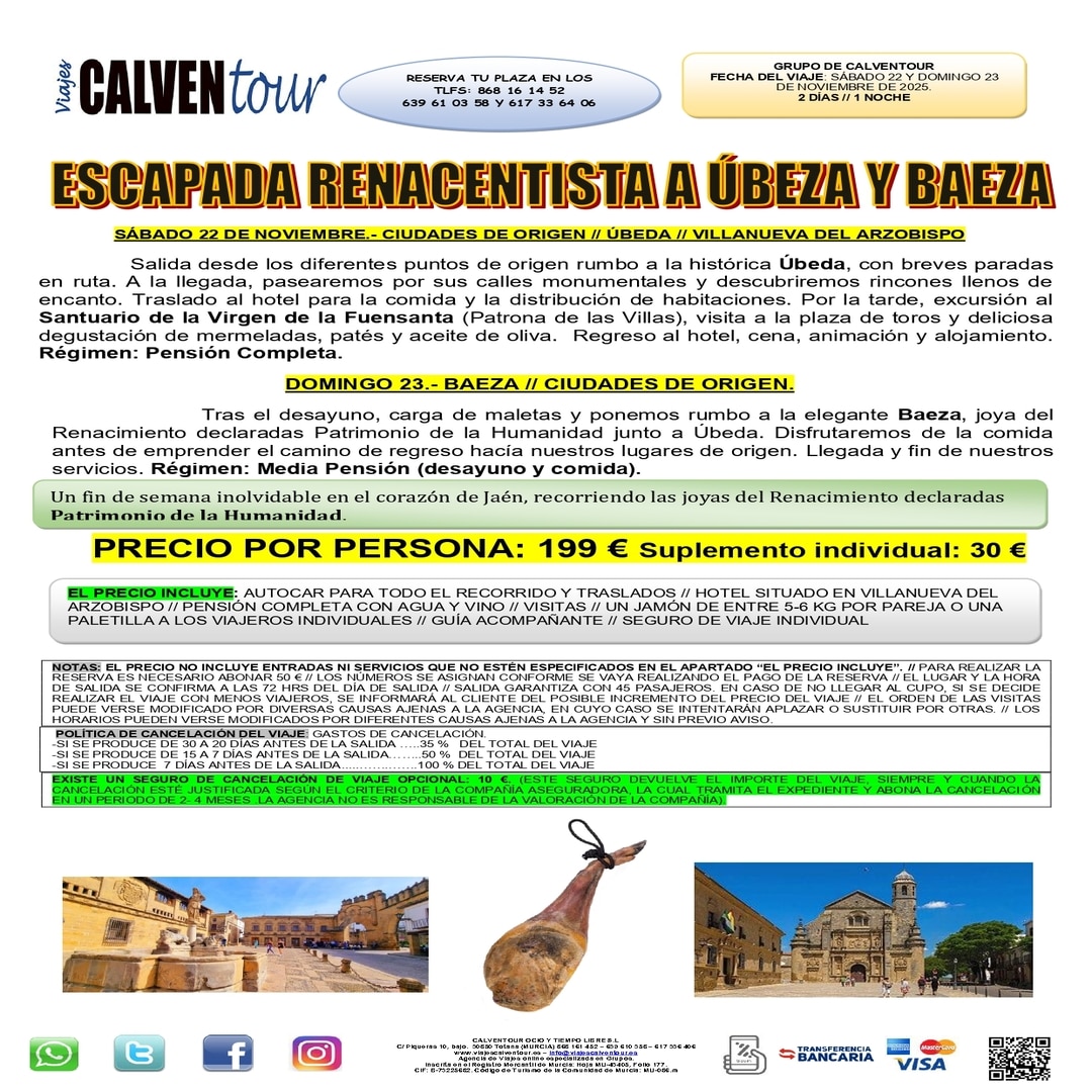 SÁBADO 22 DE NOVIEMBRE.- CIUDADES DE ORIGEN // ÚBEDA // VILLANUEVA DEL ARZOBISPO